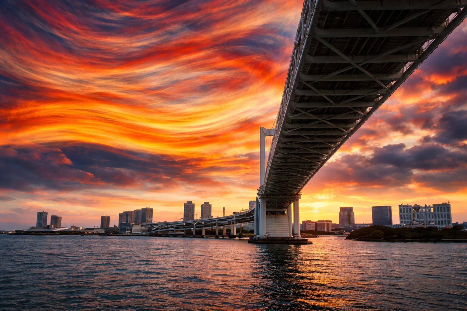 私は2人の子どもと夕暮れの埠頭を歩いていた